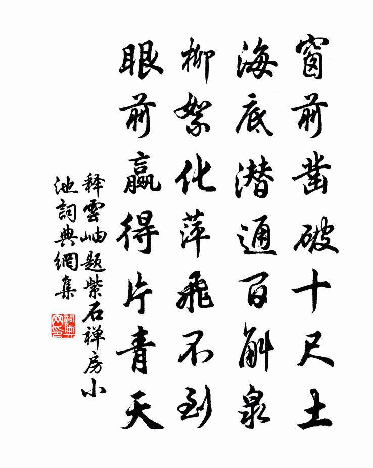 窗前凿破十尺土,海底潜通百斛泉。柳絮化萍飞不到,眼前赢得片青天。