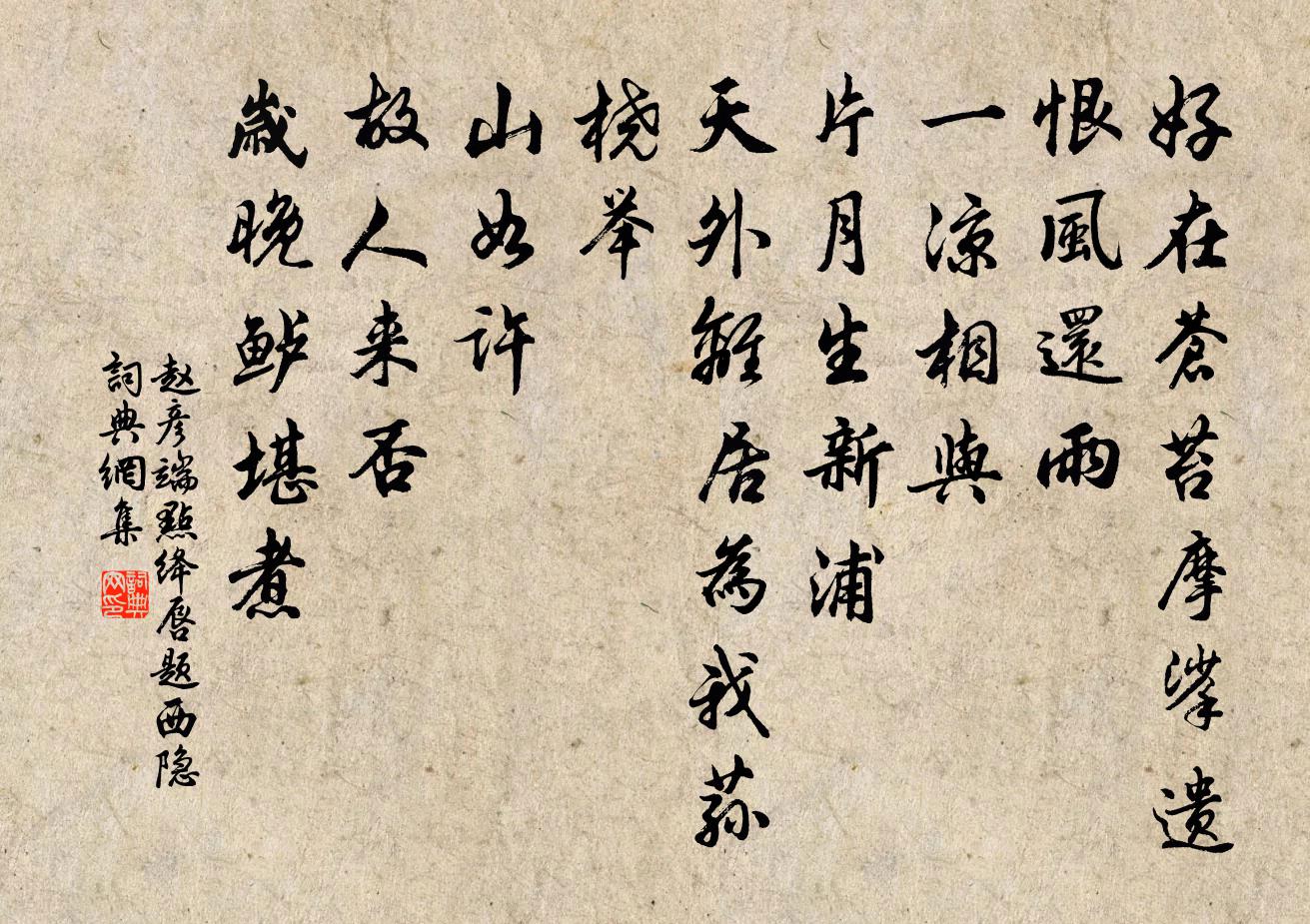 好在苍苔,摩挲遗恨风还雨。一凉相与。