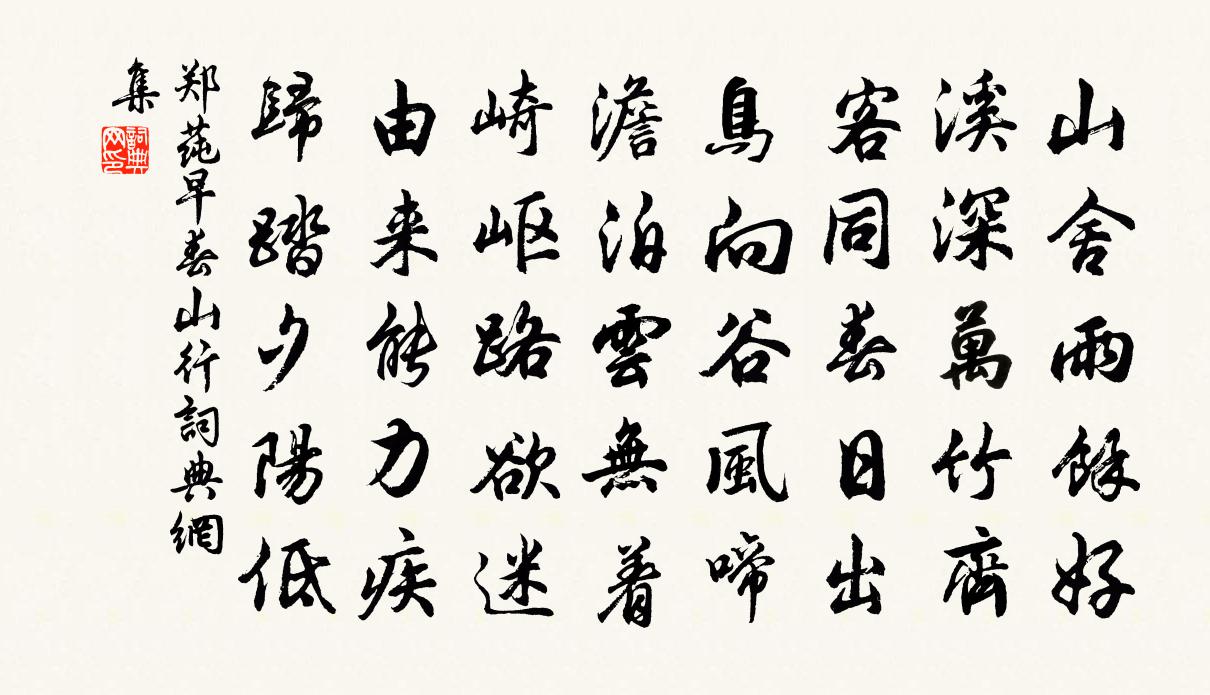 山舍雨余好,溪深万竹齐。客同春日出,鸟向谷风啼。