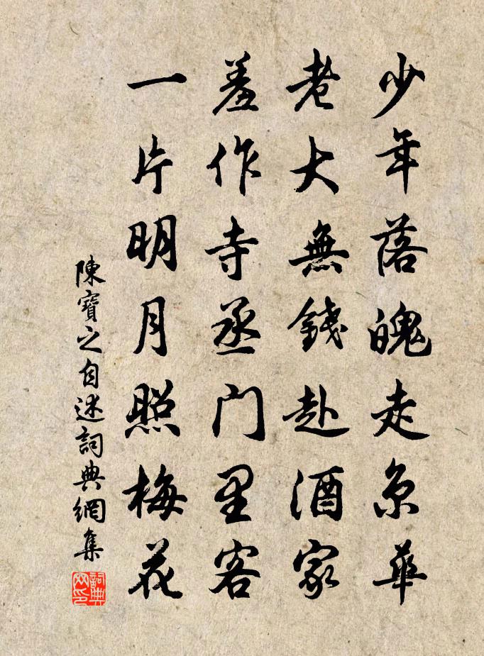 少年落魄走京华,老大无钱赴酒家。羞作寺丞门里客,一片明月照梅花。