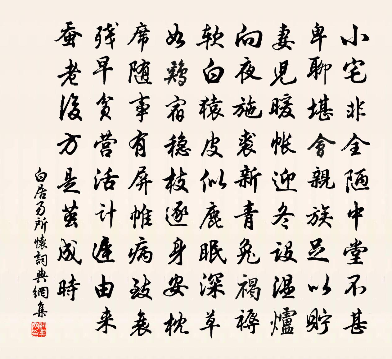 小宅非全陋,中堂不甚卑。聊堪会亲族,足以贮妻儿。