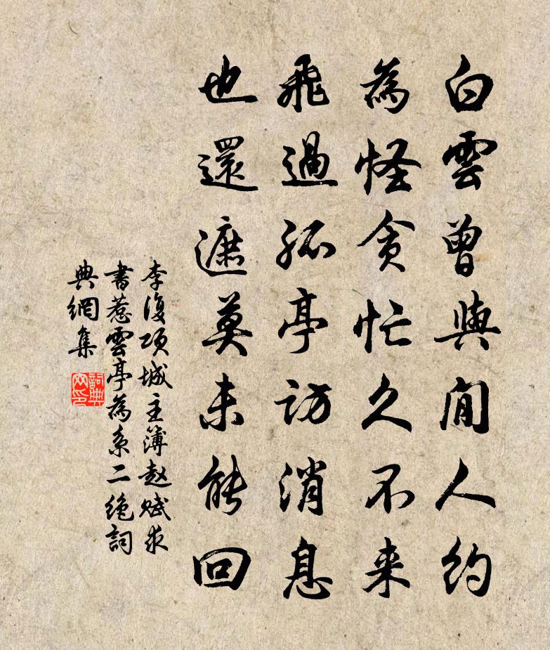 问:《项城主簿赵赋求书惹云亭为系二绝》的作者是谁?答:李复