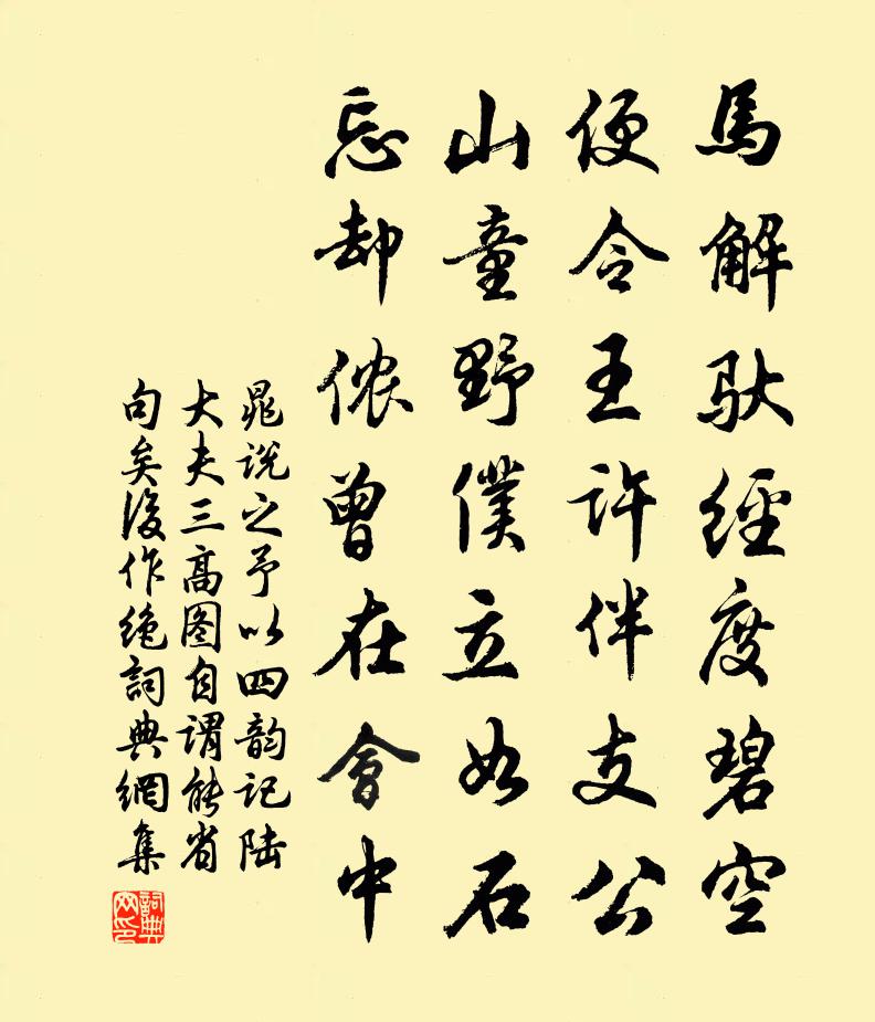 马解驮经度碧空,便令王许伴支公。山童野仆立如石,忘却侬曾在会中。