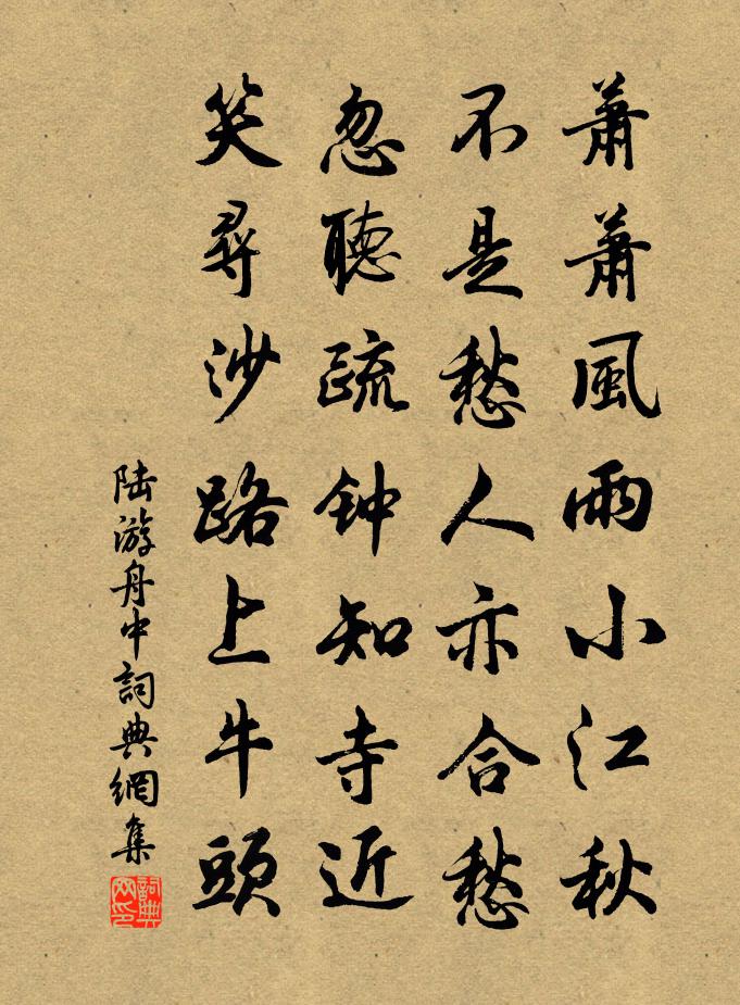 萧萧风雨小江秋,不是愁人亦合愁。忽听疏钟知寺近,笑寻沙路上牛头。