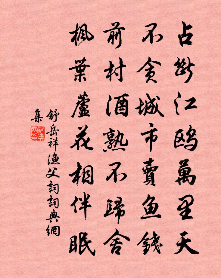 占断江鸥万里天,不贪城市卖鱼钱。前村酒熟不归舍,枫叶芦花相伴眠。