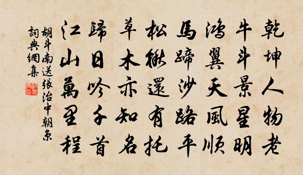 乾坤人物老,牛斗景星明。鸿翼天风顺,马蹄沙路平。