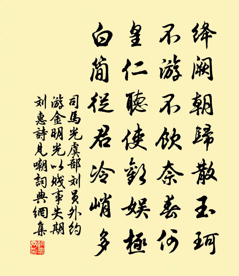 问:《虞部刘员外约游金明光以贱事失期刘惠诗见嘲》的作者是谁?答:司马光