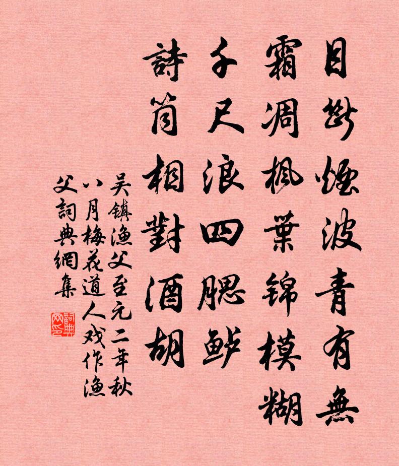 目断烟波青有无。霜凋枫叶锦模糊。