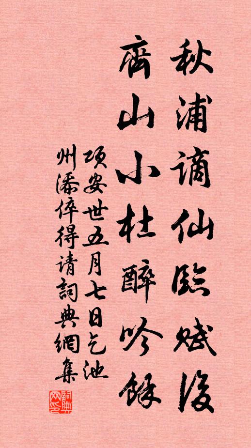 秋浦谪仙临赋后,齐山小杜醉吟馀。