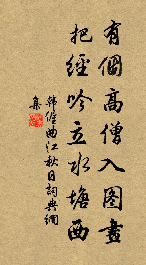 有个高僧入图画,把经吟立水塘西