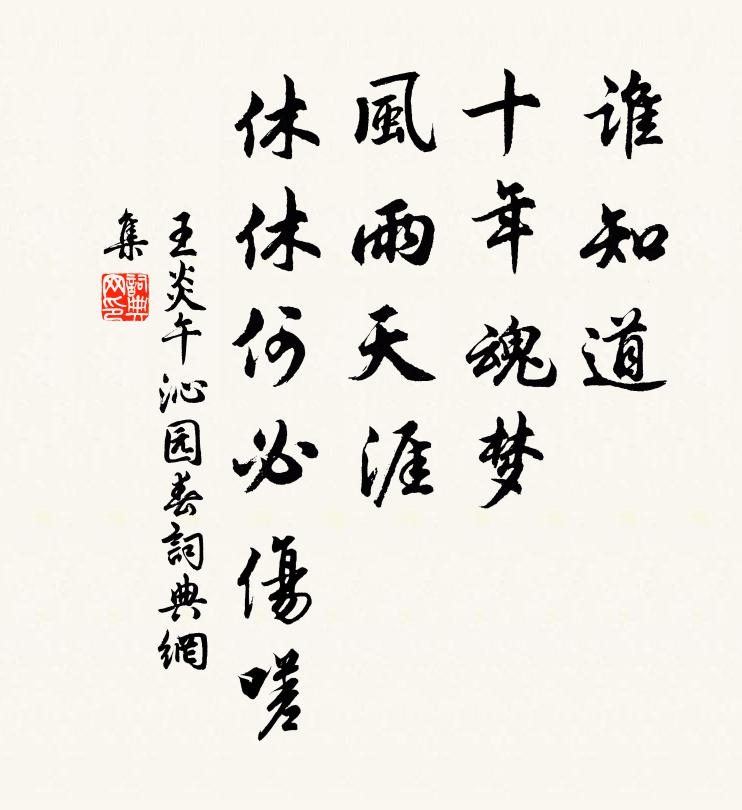 谁知道,十年魂梦,风雨天涯!休休何必伤嗟。