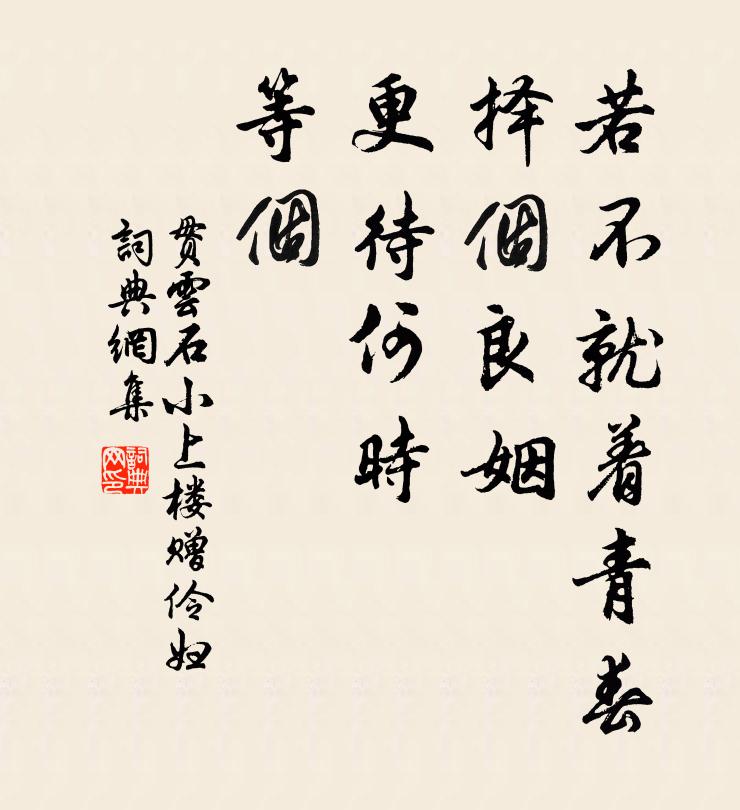 若不就着青春,择个良姻,更待何时?等个